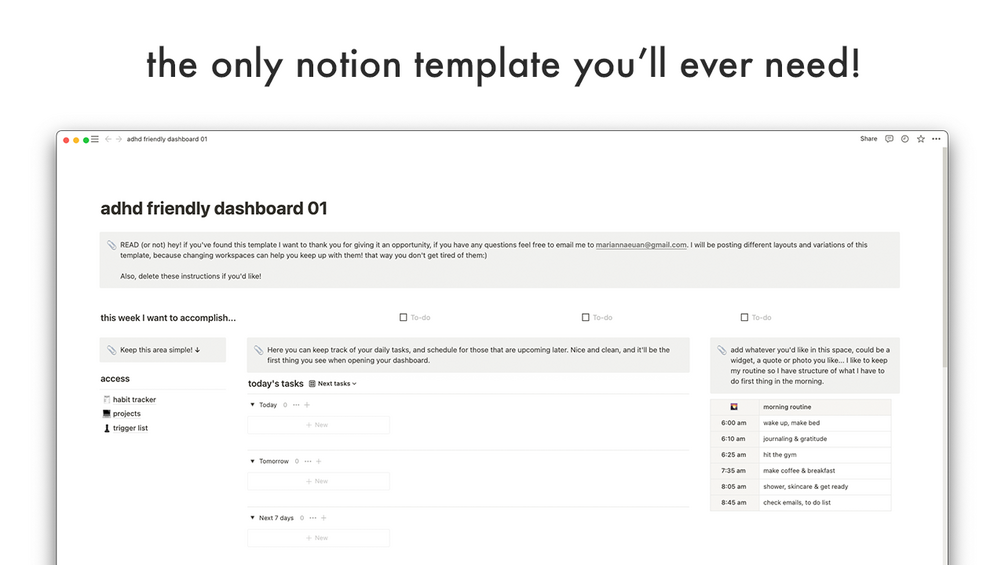 Notion: ADHD-friendly dashboard template 01